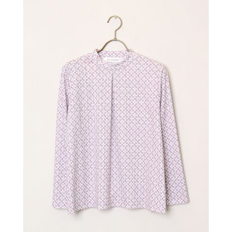 程よい肉感で立体感のあるチェックジャカードにシックな幾何柄をプリントしたカットソー。