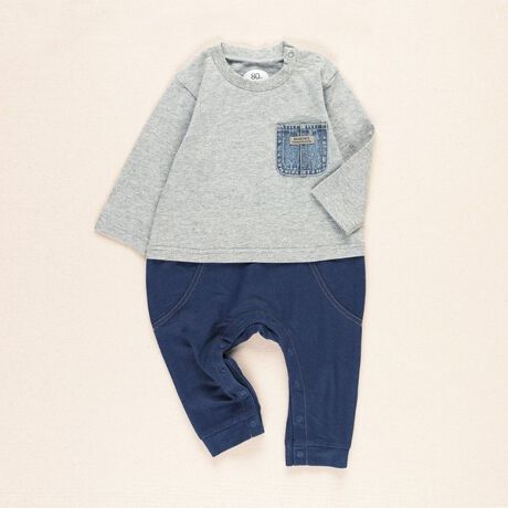 【キッズとおそろい】デニムポケット付き長袖カバーオール