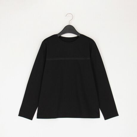 胸元にブレードと手付けのビーズ刺繍を施した丸首長袖プルオーバーです。