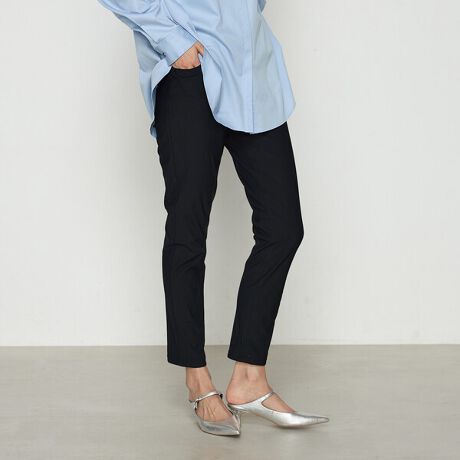生地特有のストレッチ性で履き心地が良いのはもちろんのこと、美しいシルエットに見せくれる一枚です。