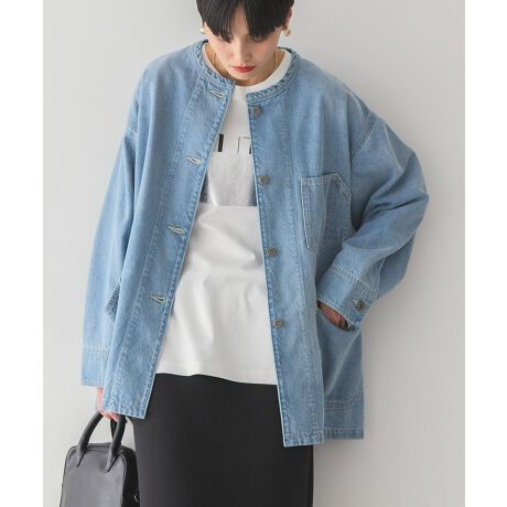 すっきりとした丸衿で、ハイネックやフード付きのインナーとも合わせやすい1着。