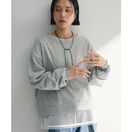 さりげないラメ感がスタイリングをパッと明るく印象付ける裏毛プルオーバー。ソフトな肌ざわりで軽やかな着心地がカジュアルスタイルにも最適なデザインです。ショート丈と身幅ワイドを組み合わせたトレンド感あるシルエット。すっきりボートネックにセンターシームのシンプルなディテールも着合わせしやすいポイントです。透け感[なし]