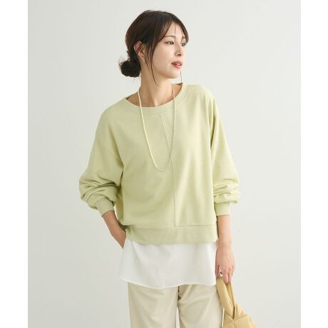 さりげないラメ感がスタイリングをパッと明るく印象付ける裏毛プルオーバー。ソフトな肌ざわりで軽やかな着心地がカジュアルスタイルにも最適なデザインです。ショート丈と身幅ワイドを組み合わせたトレンド感あるシルエット。すっきりボートネックにセンターシームのシンプルなディテールも着合わせしやすいポイントです。透け感[なし]