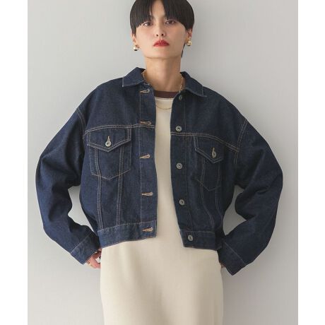 ワイドなボックスシルエットに仕上げたデニムGジャン。程よくルーズなシルエットでトレンドムードが高まります。裾のタックボタンにはロゴを刻印したオリジナルボタンを使用しています。合わせるボトムを選ばず、カジュアルからフェミニンまで幅広くマッチするアイテムです。
