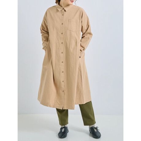 綿麻素材のナチュラルな風合いと着心地の良さが魅力的なシャツワンピース。