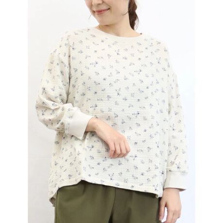 Wガーゼ花柄プリントプルオーバー