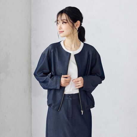 デニムライク ノーカラーブルゾン / セットアップ対応