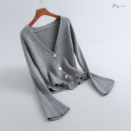 今年らしいショート丈が可愛らしさをプラスするフレアスリーブVネックショート丈カーディガン♪<br>