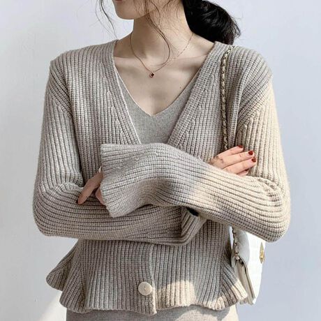 今年らしいショート丈が可愛らしさをプラスするフレアスリーブVネックショート丈カーディガン♪<br>