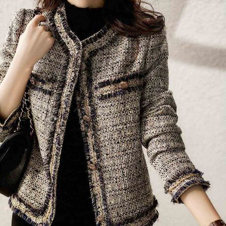 フリンジをふんだんに配した、華やかなツイード素材のノーカラージャケットが登場♪<br>