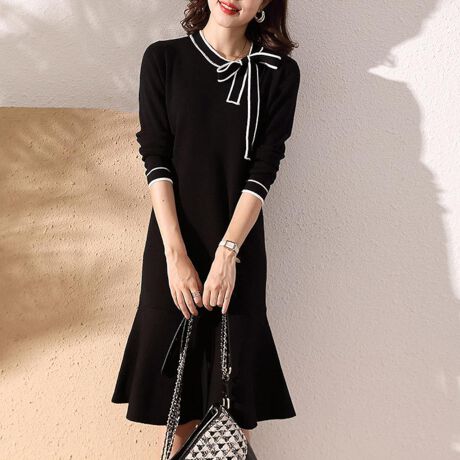 体のラインを美しく魅せてくれるタイトめなシルエット♪<br>首元にきゅっと結んだリボンがデザインされ、一気に華やぎます。<br>