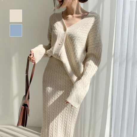 2点セットの最旬コーデが即完成するショートカーディガン&ニットスカートセットアップが登場♪<br>