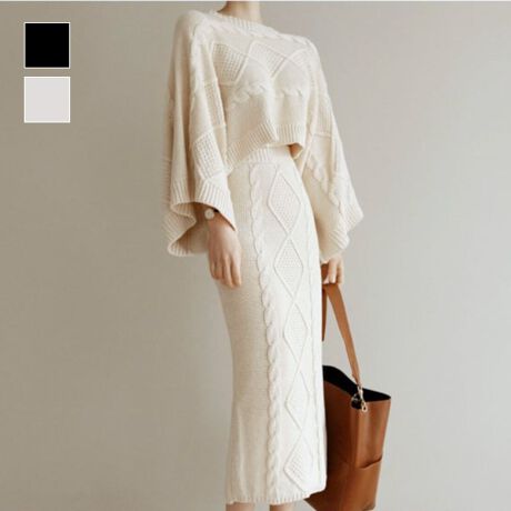 ケーブルニットワイドスリーブトップス&スカートセットアップ
