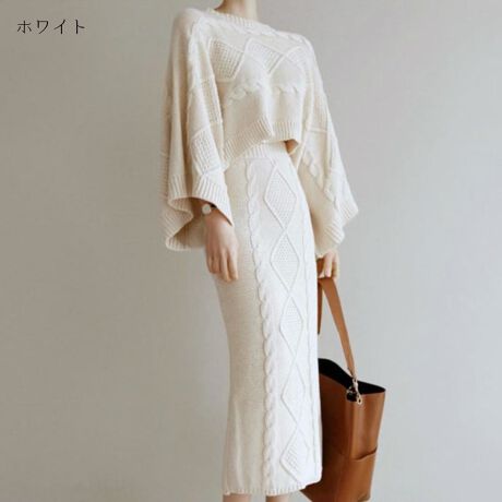 ケーブルニットワイドスリーブトップス&スカートセットアップ