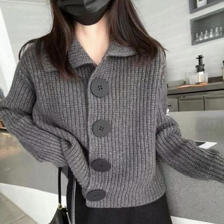 大きめのボタンと襟がレトロムードを盛り上げるショートカーディガンが登場♪<br>