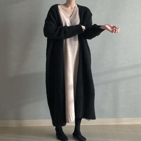 ガウン風ニットロングカーディガン