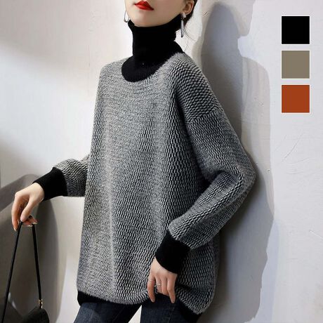 デコボコ感と起毛感が表情豊かな柄編みハイネックニットが登場♪<br>