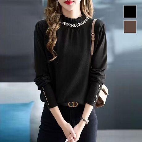 ロングシーズン活躍するハイゲージ素材のビジュー付きプチフリルハイネックニットが登場♪<br>
