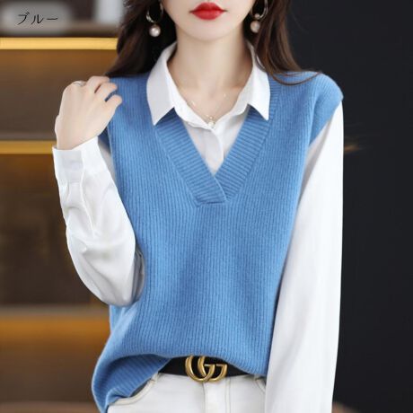 カジュアルに着こなせるトレンドライクなVネックニットベストが登場♪<br>