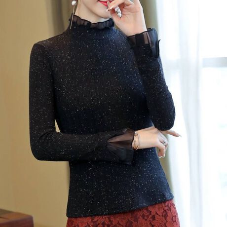 ラメ入りプチフリルハイネックニット