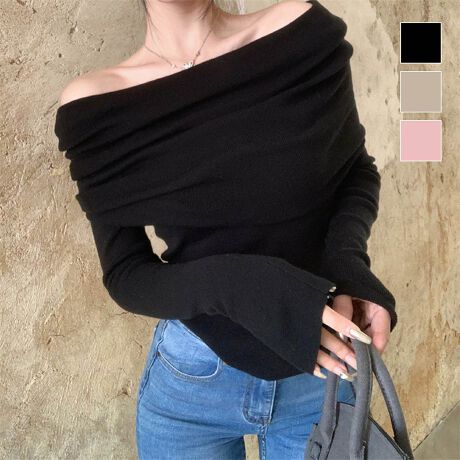 トレンドのオフショルダーデザインで首回りに色っぽさを加え、重たく見えがちな秋冬コーデを軽やかに見せてくれます。<br>