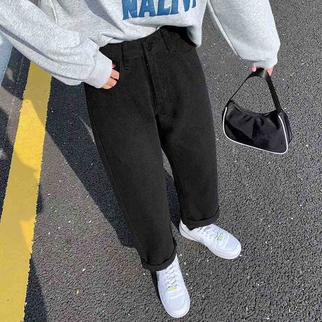 全体的にゆったりとしたシルエットのストレートデニムは、華奢見せ効果も◎<br>
