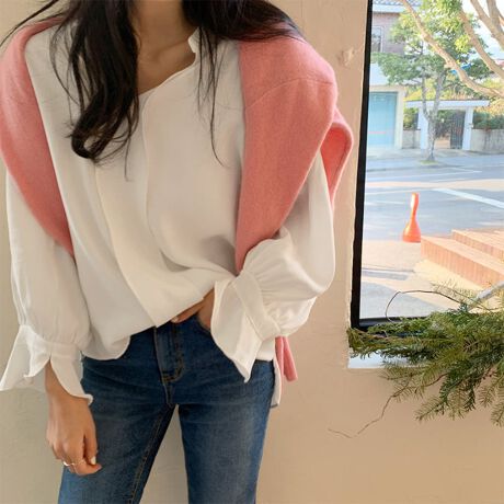 ゆとりのあるサイズ感ながら襟のスキッパーデザインが抜け感のあるキッパーブラウス