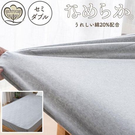 ホテルライクな上品グレー杢風の霜降りグレーでシンプルなのに美しい。長く使える、使いやすい厚みと極上の肌触りで1日の終わりを優しく癒す。コットンブレンドでお肌に優しく、綿の吸湿性・保温性を活かした厚みのあるあったかボックスシーツシングル・セミダブル・ダブルの3サイズから選べて、マットレス/敷布団兼用タイプ。※こちらはセミダブルサイズの販売ページです。他サイズは別ページにて展開中です。洋室だけでなく和室にもモダンな雰囲気を醸し出してくれる、奥行きのあるグレーカラー。お子さまから大人まで安心して使える綿混タイプのシーツお肌が敏感な方や、季節の変わり目も安心ボックスシーツタイプで、極密生地で織り上げているため、アレルギーのもとになるほこりやダニの侵入を防ぐ。(※ボックスシーツによる効果)のびのびタイプで簡単取付。介護用のベッド等にもおすすめ。高級感のある落ち着いたデザインで、性別問わず使いやすい。淡色カラーのお部屋にも良いアクセントに。