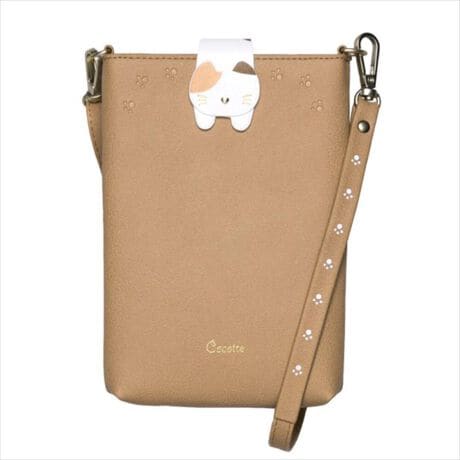 スマートフォンと小物を入れて、猫ちゃんと一緒に身軽にお出かけ。長さ調節機能可能のショルダーストラップ付き。