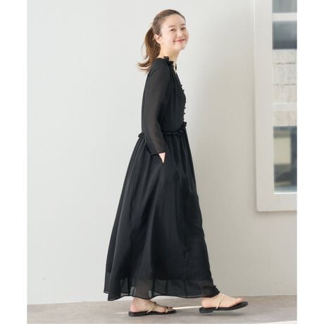 フリルのディティールがポイントの着映えワンピース。