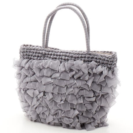 昨年も人気だったオーガンジーテープ編みカゴバッグが今年も登場。