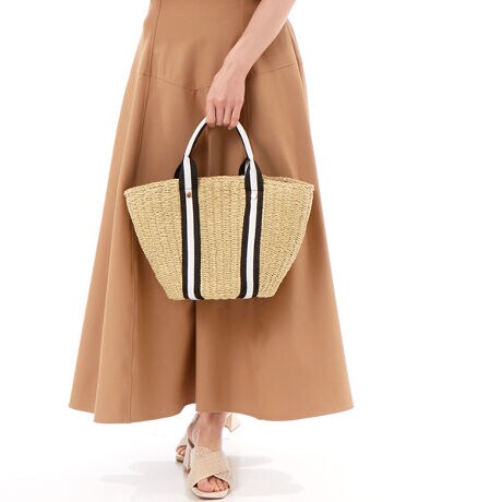 密に編んだペーパー素材ですので、しっかり自立するバッグです。