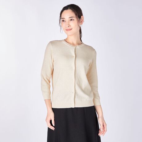 モスステッチで編まれたスタイリッシュな7分袖ニットカーディガン。裾、袖先にはリブのアクセント。Oネックでボタンが首元まであるので、カーディガンとしてはもちろん、トップスとしても着こなせます。ボトムを選ばず着こなせるシンプルなデザイン。毎日のコーディネートで活躍する便利なアイテムです。