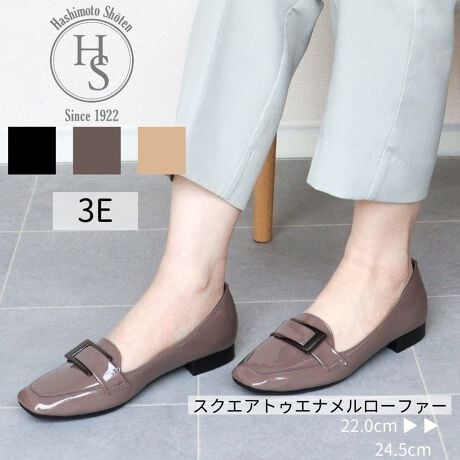 日本製 HS スクエアトゥ エナメル ローファー パンプス
