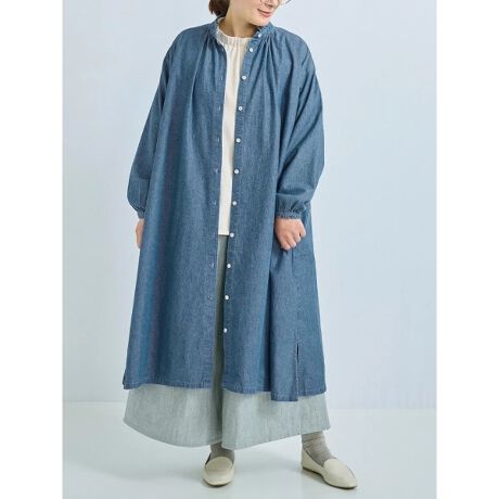 フリル襟が愛らしいアクセントをプラスするデニムシャツワンピース。