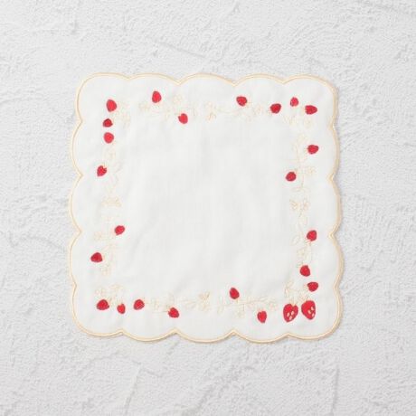 ◆【ワンズテラスオリジナル】苺 タオルハンカチ 刺繍スカラップ