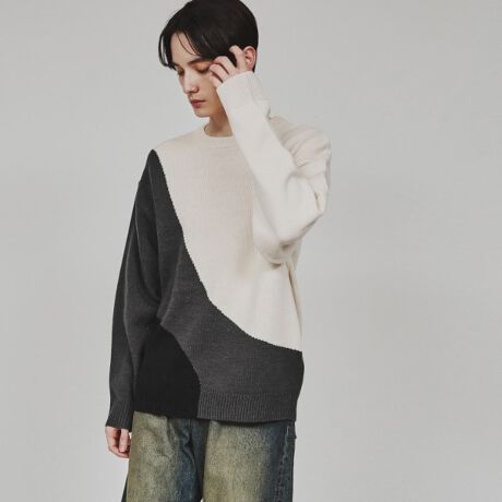 奥行きのあるデザインで、1枚で主役になるニットです。