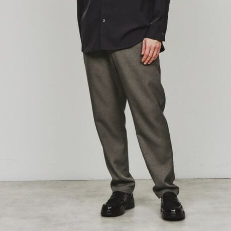 裾にかけてゆるやかなテーパードを施した、細身ですっきりと見せたシルエット。
