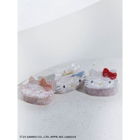 キラキラのアセチにハローキティの愛らしい表情をデザインした、キャッチーな存在感のヘアバンスです。