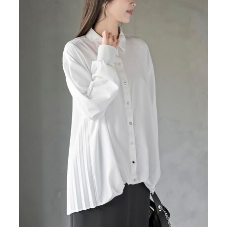 背中にプリーツをあしらったバックスタイルが魅力的なブラウス。