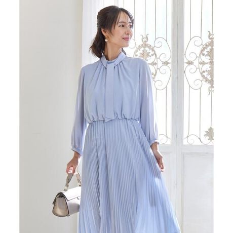 【2025春 セレモニー 卒園式 卒業式 入園式 入学式 フォーマル ハレの日】薄手のジョーゼット素材を使用した上品なボトルネックのプリーツワンピース。ボウタイは取り外しが可能で、お手持ちのネックレスを合わせるなどコーディネートのバリエーションも広がります。ウエストはゴム仕様でストレスフリー、なのにきちんと感を演出してくれる優秀な1枚です。・裏地あり・ウエストゴム仕様・後ろファスナーあり・ボウタイ取り外し可■サンプル撮影商品■こちらの商品はサンプルでの撮影となっております。実際の商品とは、サイズや色味、素材、デザイン等の仕様が若干変更になる場合がございます。