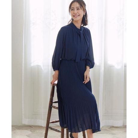 【2025春 セレモニー 卒園式 卒業式 入園式 入学式 フォーマル ハレの日】薄手のジョーゼット素材を使用した上品なボトルネックのプリーツワンピース。ボウタイは取り外しが可能で、お手持ちのネックレスを合わせるなどコーディネートのバリエーションも広がります。ウエストはゴム仕様でストレスフリー、なのにきちんと感を演出してくれる優秀な1枚です。・裏地あり・ウエストゴム仕様・後ろファスナーあり・ボウタイ取り外し可■サンプル撮影商品■こちらの商品はサンプルでの撮影となっております。実際の商品とは、サイズや色味、素材、デザイン等の仕様が若干変更になる場合がございます。