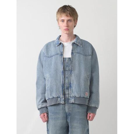 現代にあわせてアップデートしたアビエータージャケット。デニム地のライトカラーのジップフロントのボディはリラックスフィットスタイルで2つのサイドポケットが付いています。裏地はキルティング仕様になっているのもポイントです。秋冬のアウターのみならず春先にも活躍する一着です。