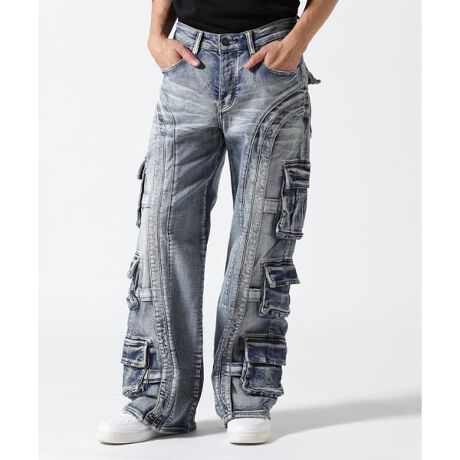 BAGGY型バラバラスで得意なワイドシルエットのデニム。ヴィンテージ風の加工が施されていて、サイドのカーゴポケットと独特な切り替えがアクセントになっています。ストレッチも効いて、履きやすくストリートスタイルのボトムにはお勧めな一着です。Valabasas/バラバサス2019年に設立された、ストリートウェアブランド。20年以上に渡り自らが運営する店舗でバイヤー、リテイラーとして活躍した兄弟が、その経験とノウハウを活かして1型のデニムを作成したことからVALABASASがスタートしました。USの限られた店舗でのみで取り扱われ、現在では商品展開が広がりカットソーやジャケット、バッグも作成しています。Moneybagg Yoに代表されるラッパーやNBAプレイヤーなどのインフルエンサーに着用された為、短いキャリアにも関わらずその名は瞬く間に広がりました。VALABASASは手を抜くことなく、ユニークで高品質なアイテムを厳選することに誇りを持ちファッションに敏感なブランドです。