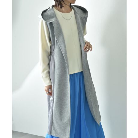 旬なスタイルが決まるダンボール素材のベスト。ストンとしたシルエットが大人カジュアルにはぴったりのアイテムです。こなれ感が出るロング丈、アクセントになるサイドの異素材使い、小顔効果のある大き目なフードも人気のポイントです。