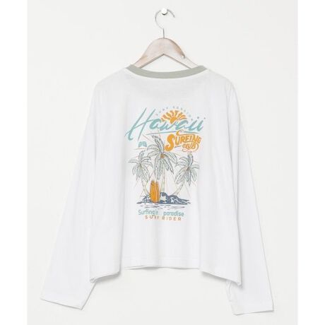 [型番:4CA-5137-2025]ヴィンテージ感のあるプリントデザインの長袖Tシャツ。薄手の素材なので、どんなシーンでも使いやすく長い期間活躍するアイテムです。短めな丈感と、衿ぐりの配色で爽やかに着こなせる一枚に。