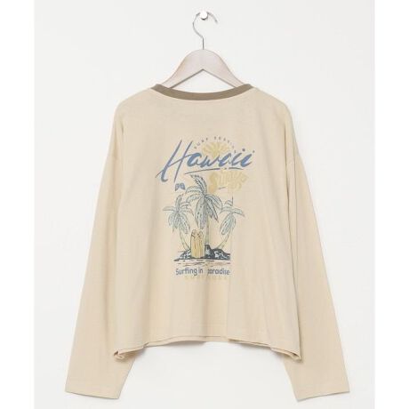 [型番:4CA-5137-2025]ヴィンテージ感のあるプリントデザインの長袖Tシャツ。薄手の素材なので、どんなシーンでも使いやすく長い期間活躍するアイテムです。短めな丈感と、衿ぐりの配色で爽やかに着こなせる一枚に。