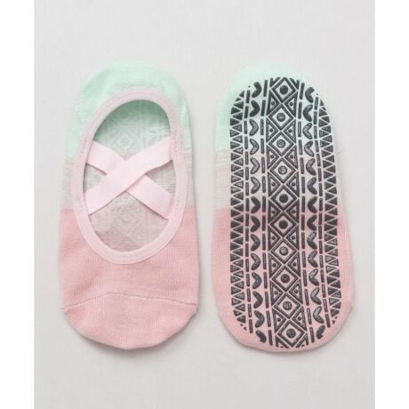 [型番:YCYP5105-2025]滑り止めの付いたレッスンソックス。バレエシューズのようなデザインで、クロスしたゴムがしっかりと足にフィットします。汗をかいても滑りにくく通気性にも優れているのでフラやタヒチアンのレッスンにおすすめ。