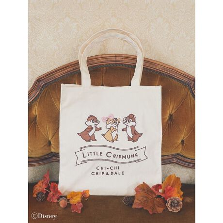 丈夫なキャンバス生地に、「チップ」と「デール」、お友達の「チチ」を刺繍で表現したトートバッグ。