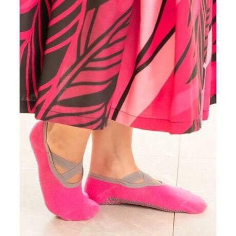 [型番:YCYP5104-2025]足元にしっかりフィットするクロスゴム仕様のレッスン用ソックス。滑り止め付きで安心感があり、フラの練習や室内ダンスに最適。カラフルな色展開と幾何学模様のデザインが足元をおしゃれに演出します。